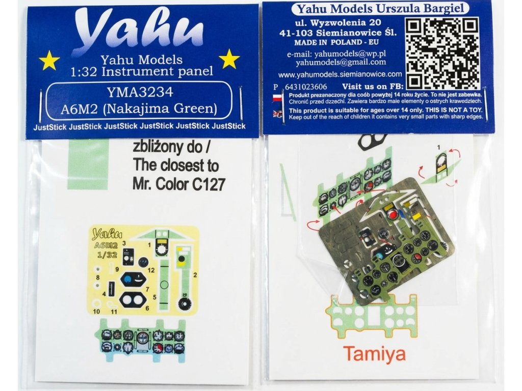 Yahu Models 1/32 A6M2 Nakajima green is a set of colour photo-etched dashboards for Tamiya Mitsubishi A6M2b 1:32 scale kit. The parts are pre-coloured and ready for direct gluing (JustStick technology), greatly simplifying cockpit detailing without the need for hand painting. The kit does not include paint or glue needed for assembly.