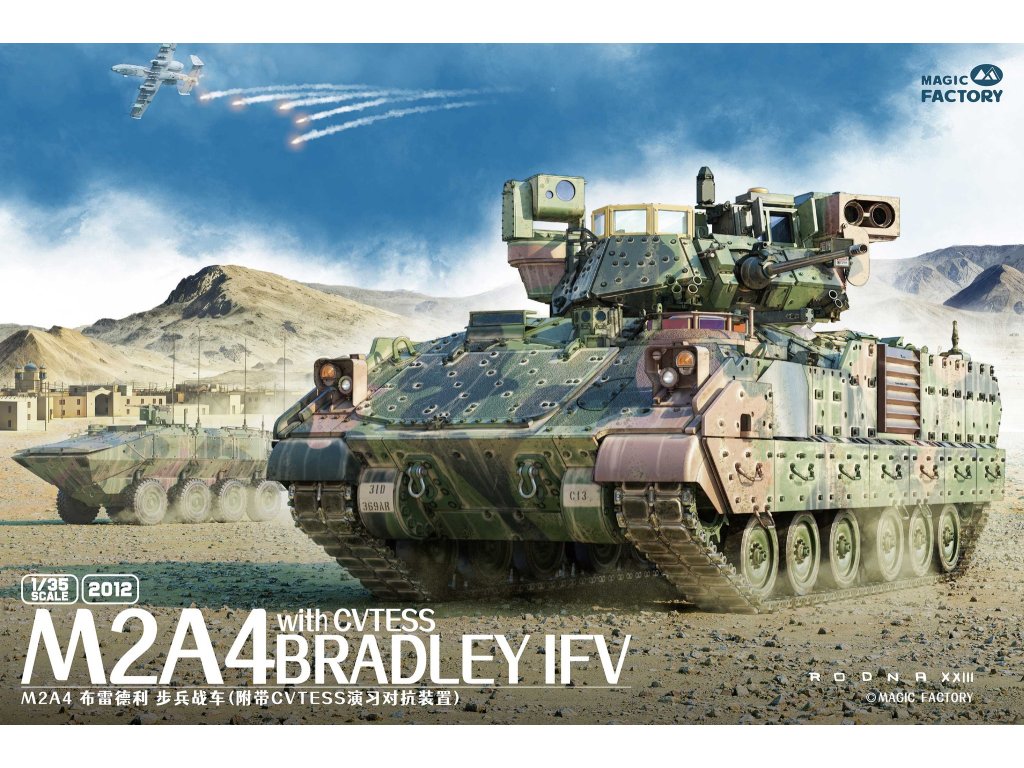 Magic Factory 1/35 M2A4 Bradley IFV with CVTESS is a detailed plastic model kit of the latest version of the M2A4 infantry fighting vehicle equipped with realistic CVTESS training system. It features fine details, realistic elements and a wealth of accessories. Package does not include paint or glue needed for assembly.