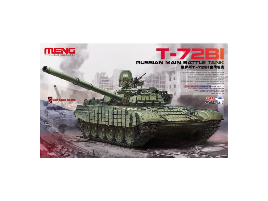 Meng 1/35 Russian Main Battle Tank T-72B1 is a 1/35th scale plastic model construction kit of the Soviet main battle tank. This variant of the T-72 was introduced in the early 1980s and brought improved armor protection and upgraded armament over the original versions.