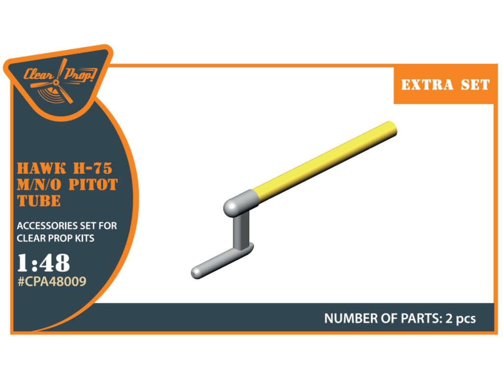 Detailed 1/48th scale metal pitot tube for Clear Prop's Hawk H-75 M/N/O models (CP4803/CP4804). Provides greater accuracy and realism than plastic parts.