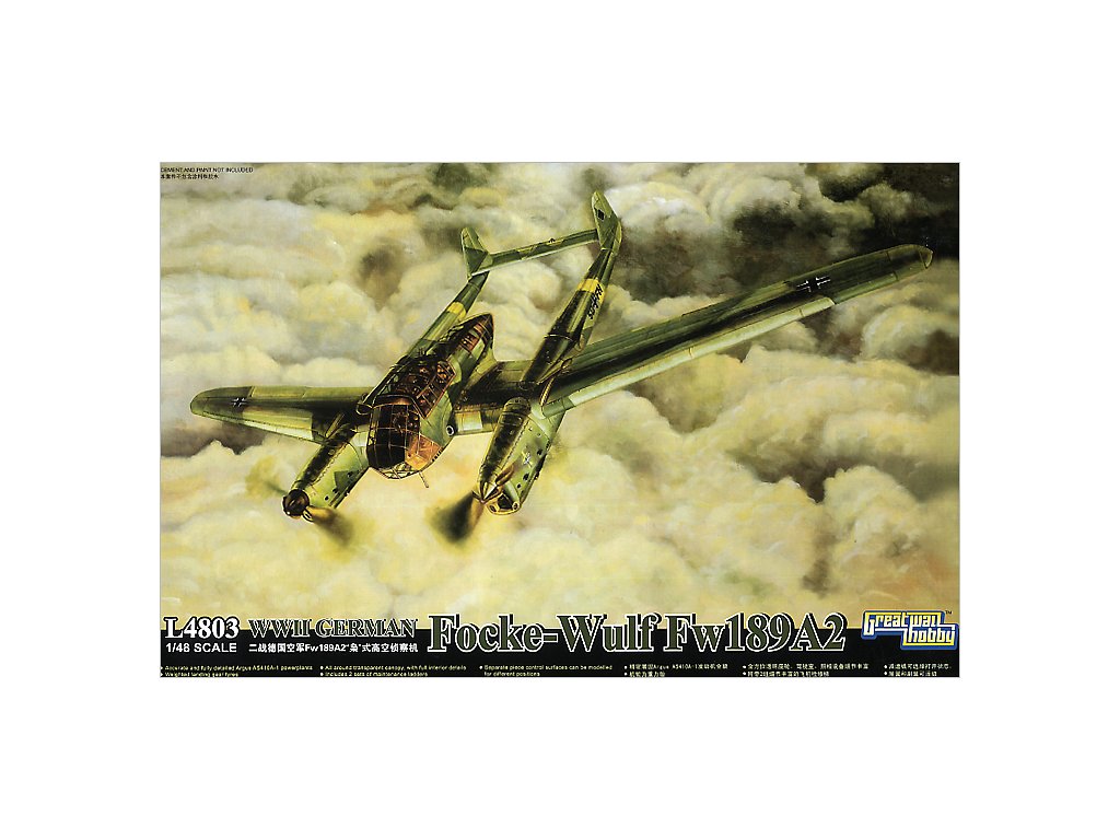 Great Wall Hobby L4803 German Focke-Wulf Fw 189 A-2 (1:48) is a plastic model of German WWII reconnaissance and observation aircraft. The Fw 189 is known for its characteristic two-hull construction and glass cockpit nacelle, making it a distinctive and easily recognizable model. The 1:48 scale offers a good compromise between size and detail capability. The package does not include the paint or glue needed for assembly.