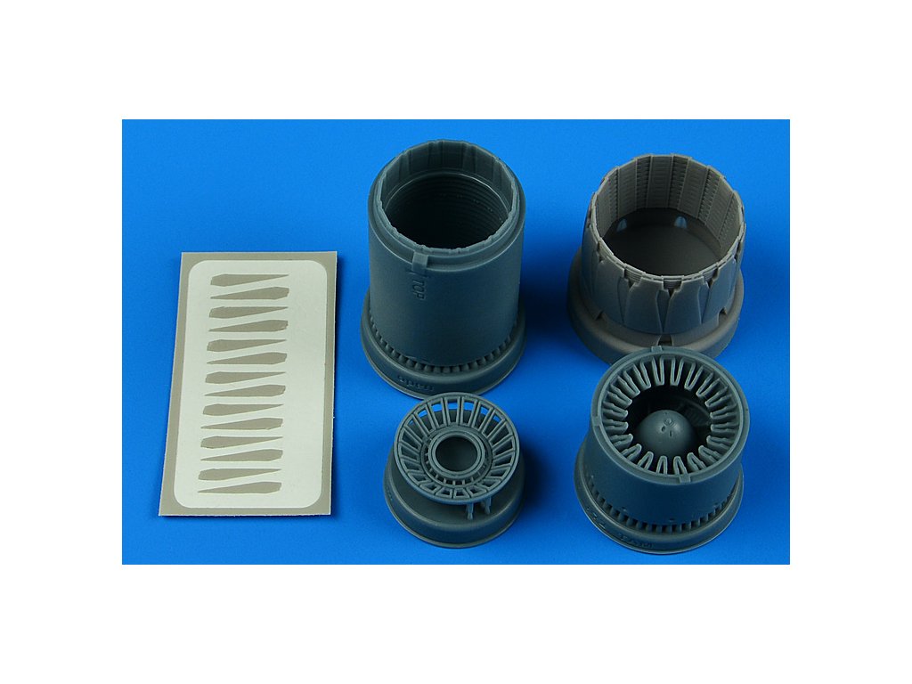 The Aires resin add-on is designed for modelers who want to replace the often simplistic plastic kit nozzle with a more accurate and detailed version. Included are finely molded inner nozzle blades (called petals), outer ring and structural elements that match the actual F110 engine design. The open nozzle position gives the model a more dynamic appearance and better represents the operational state of the aircraft in action. Installation requires careful removal of the original plastic nozzle, modification of the rear fuselage and bonding of the resin parts - the use of instant glue or two-part epoxy is recommended. The resin surface should be lightly sanded with a fine abrasive and degreased before painting.