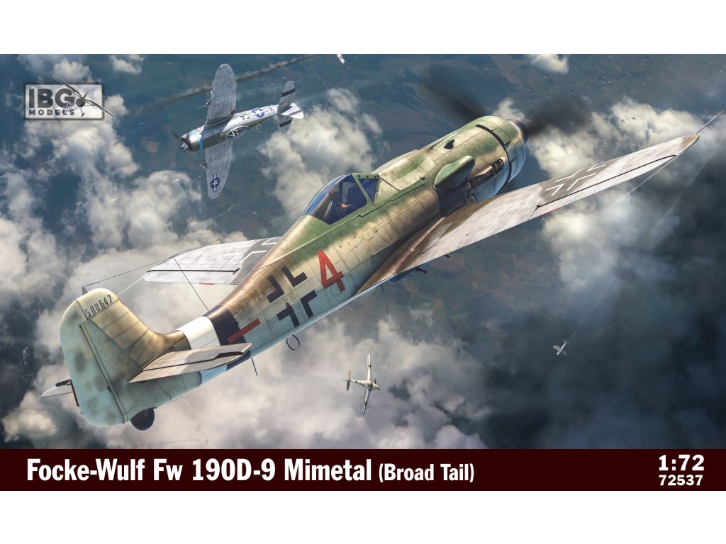 The IBG 1/72 Focke-Wulf Fw 190D-9 Mimetall (Broad Tail) kit offers precision-machined plastic parts, realistic cockpit, landing gear, armament and decals for authentic wide-body versions.