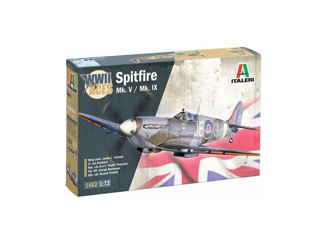 Italeri 1/72 Spitfire Mk.V / Mk.IX Aces is a kit of one of the most famous WWII fighter aircraft in Mk.V and Mk.IX, which flew in the hands of the most successful RAF and Allied pilots. The model offers accurate shapes, fine paneling and attractive markings associated with the notable fighter aces.