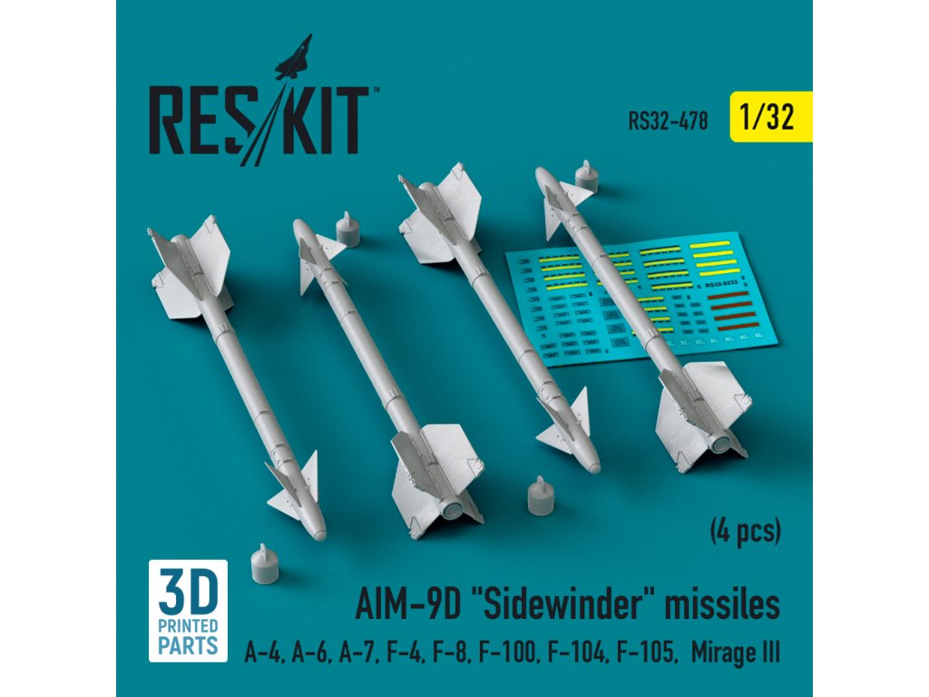 AIM-9D "Sidewinder" missiles (4 pcs) (A-4, A-6, A-7, F-4, F-8, F-100, F-104, F-105, Mirage III) (3D
