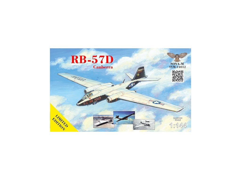 Sova-M RB-57D Canberra 1/144 je stavebnice amerického výškového průzkumného letounu z období studené války, zpracovaná v měřítku 1/144 s detailními plastovými díly a obtisky pro tři kamuflážní schémata. Balení neobsahuje barvy ani lepidla potřebné k sestavení.