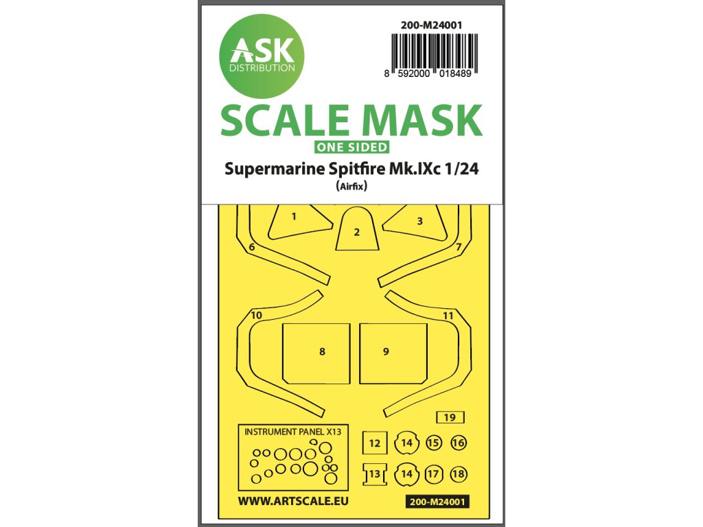1/24 Spitfire Mk.IXc jednostranná maska pro stavebnici Airfix. Katalogové číslo 200-M24001. Excelentní kvalita, nejlepší technologická výroba průřezu folie. Určená pro: painting - airbrush. Veškeré díly masky jsou potištěny čísly, které spolu s návodem jednoznačně určují maskované místo na čirých a jiných dílech plastikového modelu.