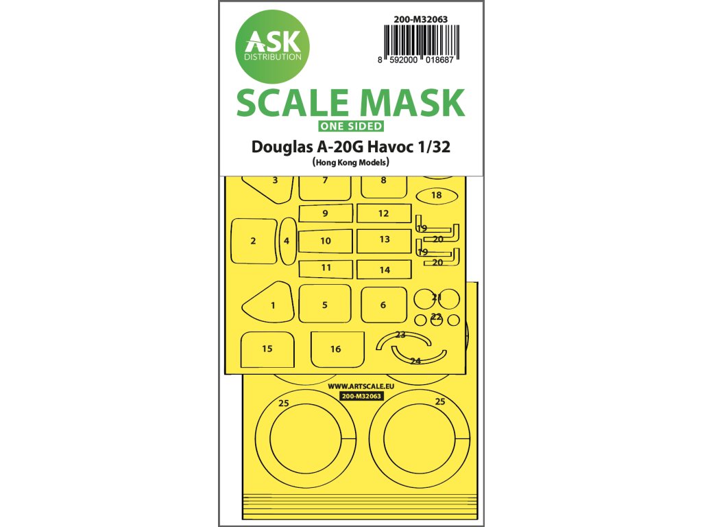 Firma Art Scale Kit Distribution (ASK) vyrábí předřezané a očíslované maskovací fólie pro plastikové modely. Masky jsou navrženy především pro maskování kabinek a koleček, ale usnadňují i maskování dalších částí modelu. Každá sada je doporučena pro konkrétní model stavebnice v odpovídajícím měřítku, což zaručuje maximální přesnost a snadné použití.