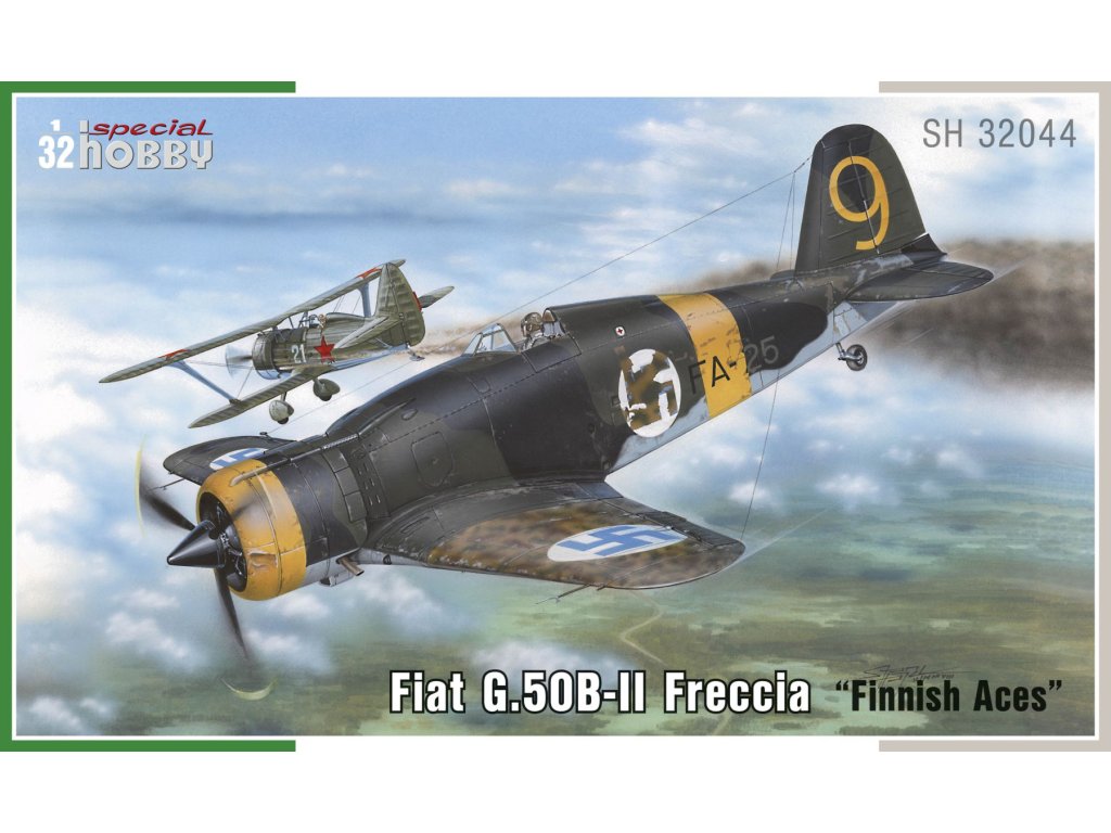 Fiat G.50-II Freccia „Finnish Aces“ v měřítku 1/32 od Special Hobby zachycuje italský stíhací letoun, který si během druhé světové války vydobyl skvělou reputaci v rukou finských pilotů. Fiat G.50 byl prvním moderním italským jednoplošným stíhačem se zatahovacím podvozkem, avšak v italské službě se potýkal s omezenou výzbrojí a nevýhodným otevřeným kokpitem.