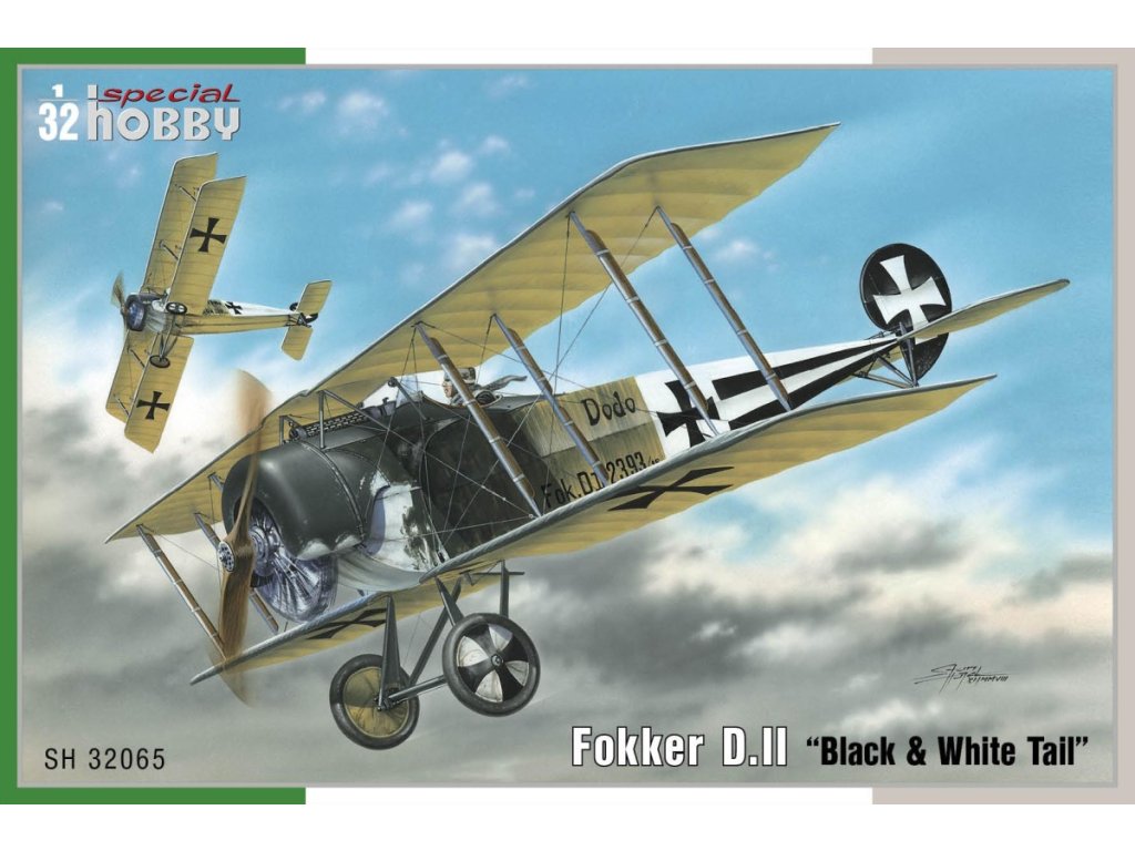 Fokker D.II Black & White Tail v měřítku 1/32 od Special Hobby zachycuje raný německý stíhací letoun, který byl vyvinut jako nástupce úspěšných Fokkerových monoplánů. Vstoupil do služby v roce 1916 a byl součástí první generace německých dvouplošných stíhaček. Díky své nízké hmotnosti a dobré manévrovatelnosti byl efektivní v soubojích proti raným spojeneckým letounům, ale jeho slabší motor a relativně nízká rychlost znamenaly, že byl brzy nahrazen modernějšími stroji, jako byl Albatros D.I.