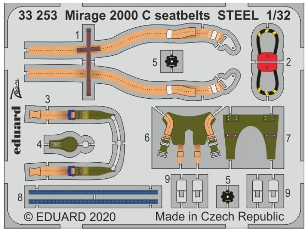 1/32 Mirage 2000 C seatbelts STEEL for KITTY HAWK kit