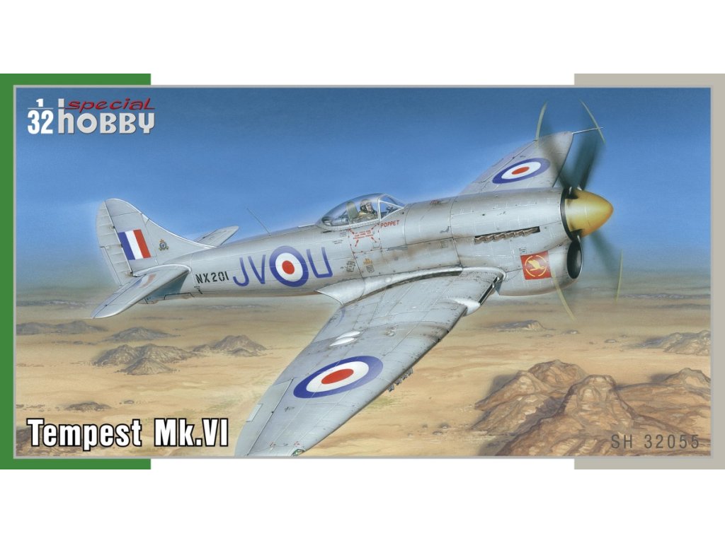 Hawker Tempest Mk.VI v měřítku 1/32 od Special Hobby představuje finální variantu tohoto britského stíhacího letounu, která byla upravena pro provoz v horkých klimatických podmínkách. Tempest Mk.VI byl vybaven výkonnějším motorem Napier Sabre V a zesíleným chlazením, což mu umožnilo efektivní nasazení na Blízkém východě a v dalších britských koloniích po druhé světové válce. Model nabízí detailní zpracování trupu, motoru, kokpitu a výzbroje. Balení neobsahuje barvy ani lepidla potřebná k sestavení.