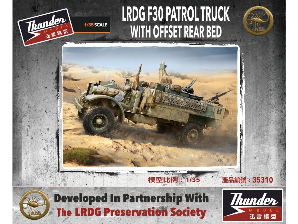 LRDG F30 Patrol Truck s posunutou zadní nástavbou od Thunder Modelu v měřítku 1/35 je precizně zpracovaný model vozidla používaného elitní jednotkou Long Range Desert Group během druhé světové války. Balení neobsahuje barvy ani lepidla potřebné k sestavení.