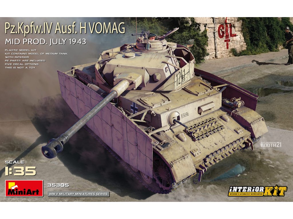 Model Pz.Kpfw. IV Ausf. H Vomag. Mid Prod. (July 1943) v měřítku 1/35 od MiniArt zachycuje střední verzi německého tanku z července 1943 s plně zpracovaným interiérem. Realistické detaily podvozku, motorového prostoru a věže. Balení neobsahuje barvy ani lepidla potřebné k sestavení.