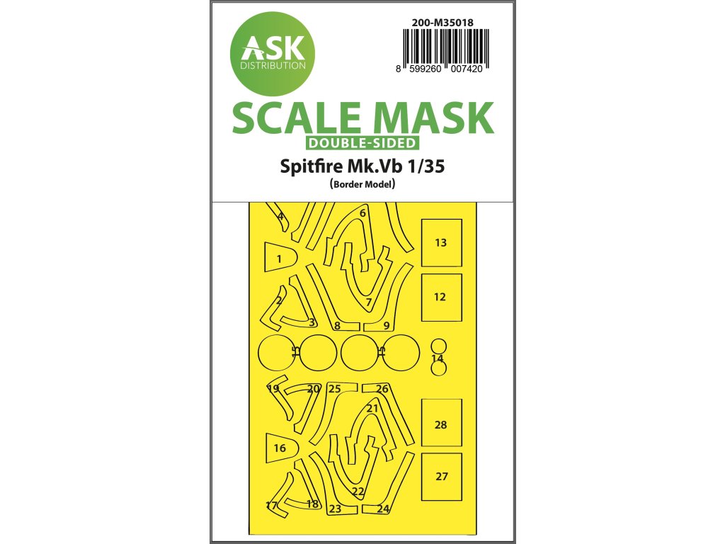 1/35 Spitfire Mk.Vb, oboustranná fit express maska pro stavebnici Border Model. Katalogové číslo 200-M35018