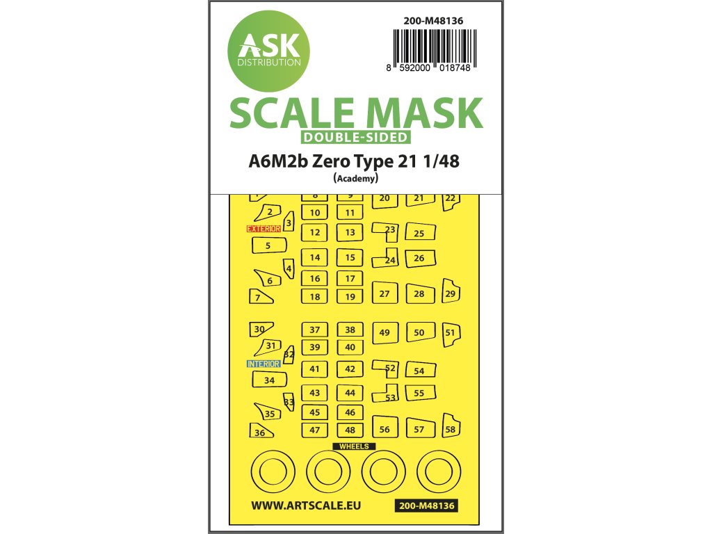 Firma Art Scale Kit Distribution (ASK) vyrábí předřezané a očíslované maskovací fólie pro plastikové modely. Masky jsou navrženy především pro maskování kabinek a koleček, ale usnadňují i maskování dalších částí modelu. Každá sada je doporučena pro konkrétní model stavebnice v odpovídajícím měřítku, což zaručuje maximální přesnost a snadné použití.