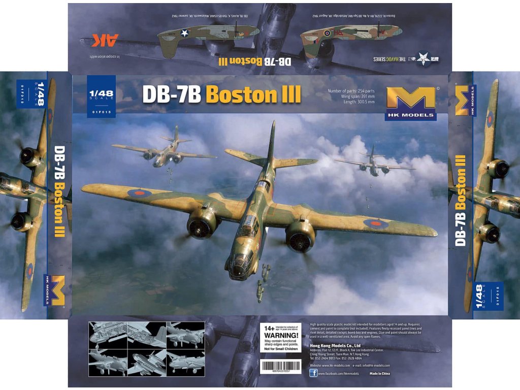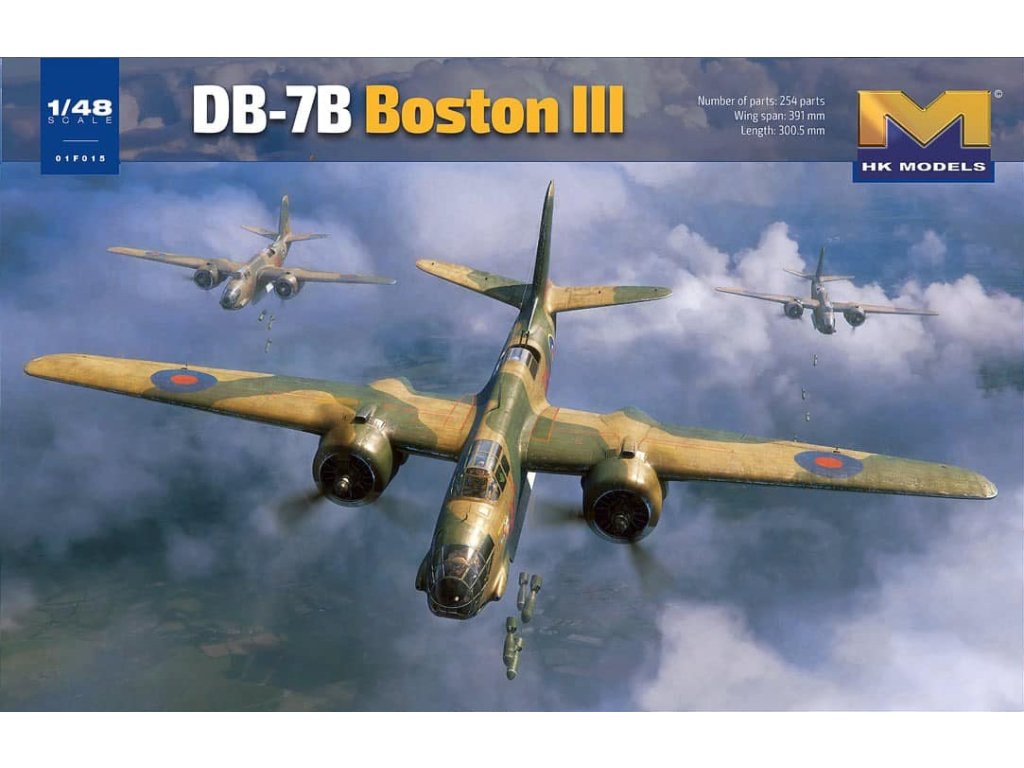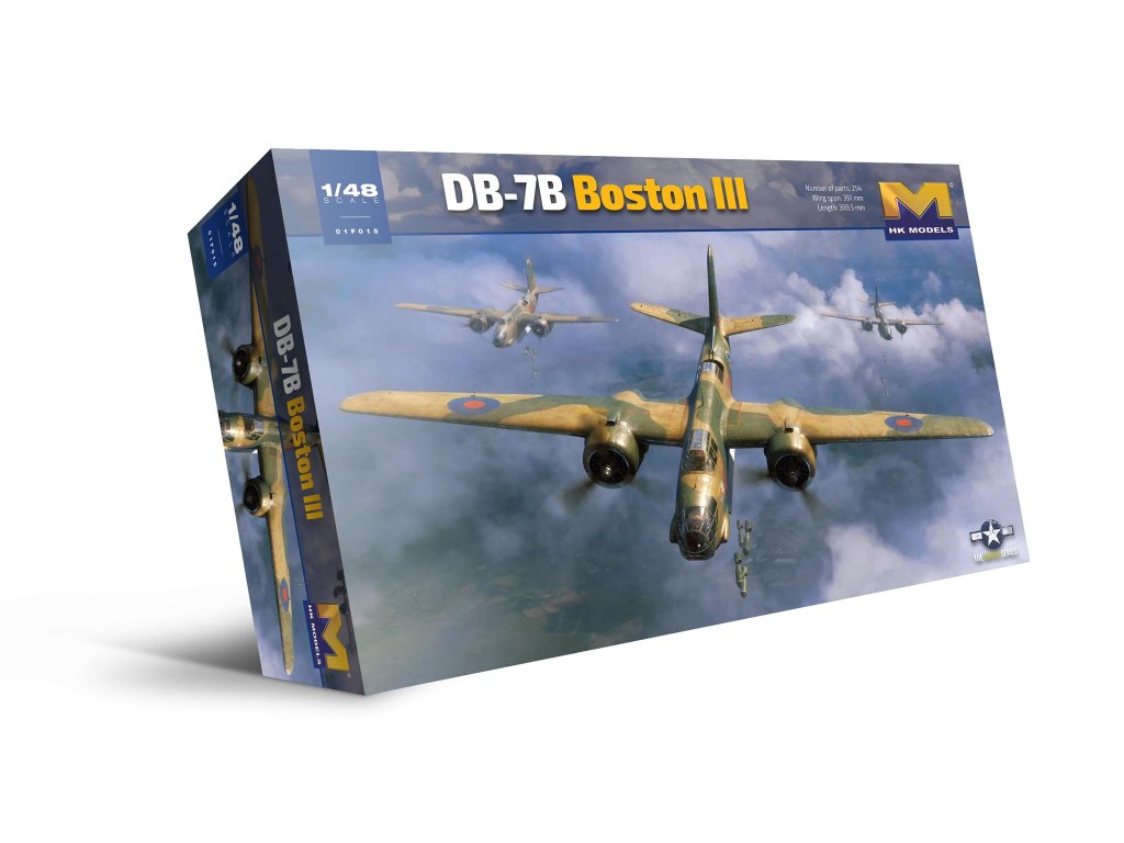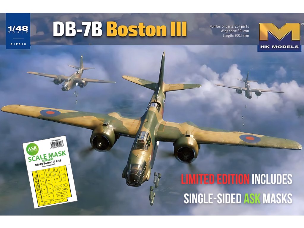 Detailní stavebnice bombardovacího letounu DB-7B Boston III v měřítku 1/48 od HK Models. Limitovaná edice obsahuje jednostranné masky ASK Distribution, které usnadní barvení čirých dílů modelu.