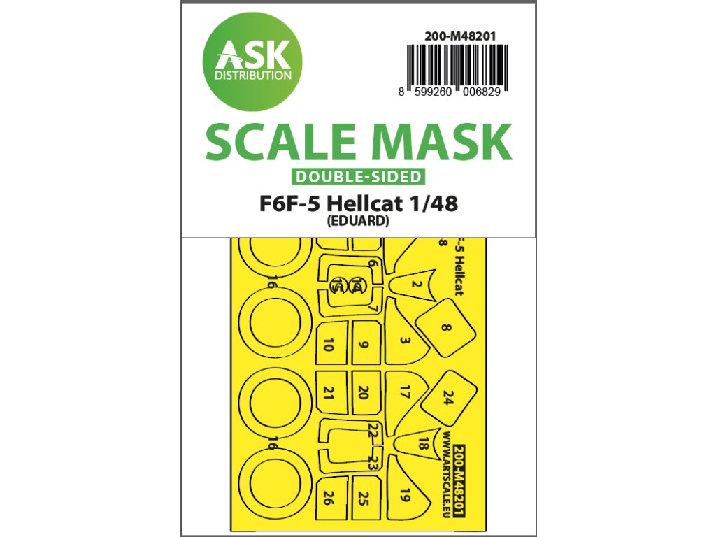 1/48 F6F-5 Hellcat oboustranná samolepící fit maska čirých dílů a disků kol pro stavebnici Eduard. Katalogové číslo ASK Distribution: 200-M48200
