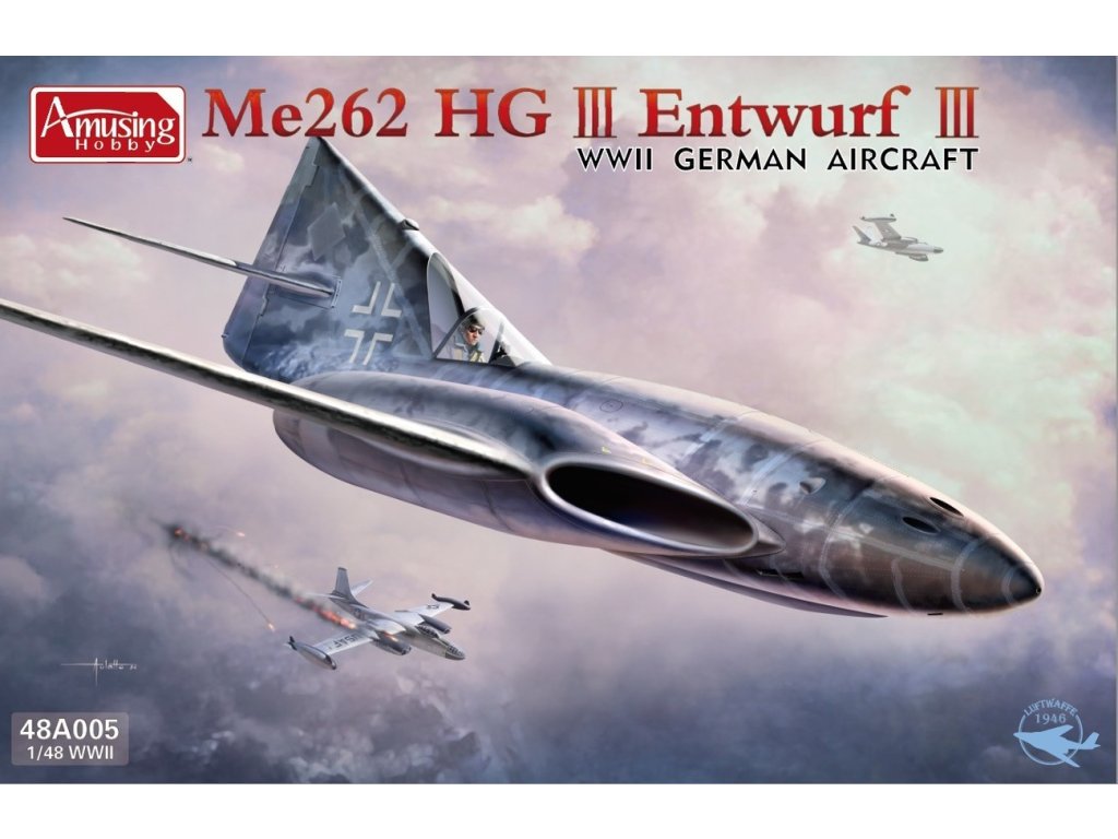 Amusing Hobby 1/48 Me 262 HG III Entwurf III je plastová stavebnice hypotetické verze německého proudového letounu Me 262 z konce druhé světové války. Tento návrh (Entwurf III) patřil do řady vysokorychlostních projektů HG, které měly posunout letové vlastnosti původního stroje ještě dál.