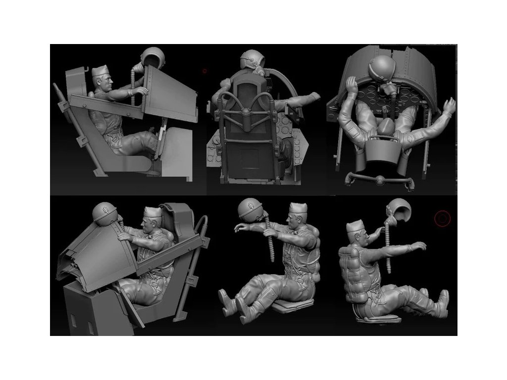 1/48 SAAB J29 pilot seated. Designed to fit Pilot-Replicas J29 seat without modification