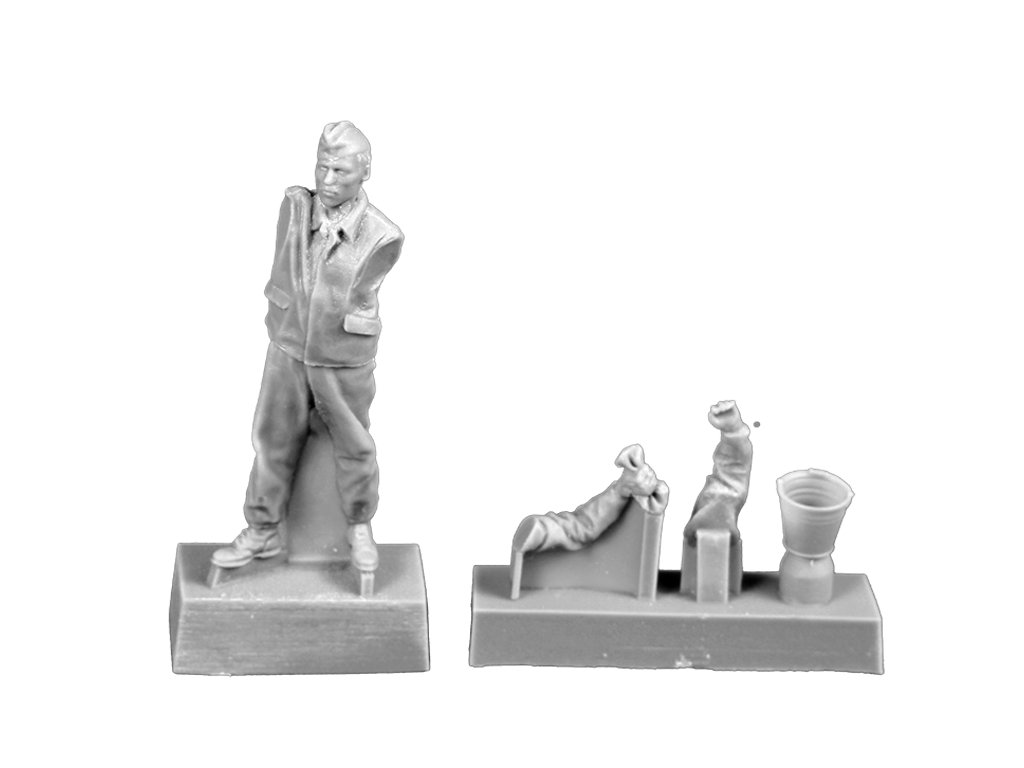 Resinové figurky určené jako doplněk k plastikovým modelům a diorámatům. Mají realistické proporce a přirozené pózy. Je nutné je slepit vhodným lepidlem na resin a před lakováním doporučujeme povrch očistit a použít základní nátěr. Skvěle doplní jakýkoli model nebo diorámu.