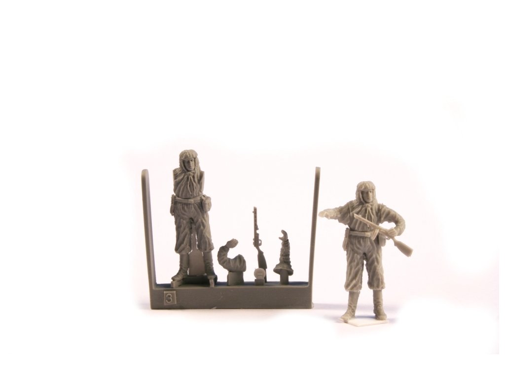 Resinové figurky určené jako doplněk k plastikovým modelům a diorámatům. Mají realistické proporce a přirozené pózy. Je nutné je slepit vhodným lepidlem na resin a před lakováním doporučujeme povrch očistit a použít základní nátěr. Skvěle doplní jakýkoli model nebo diorámu.