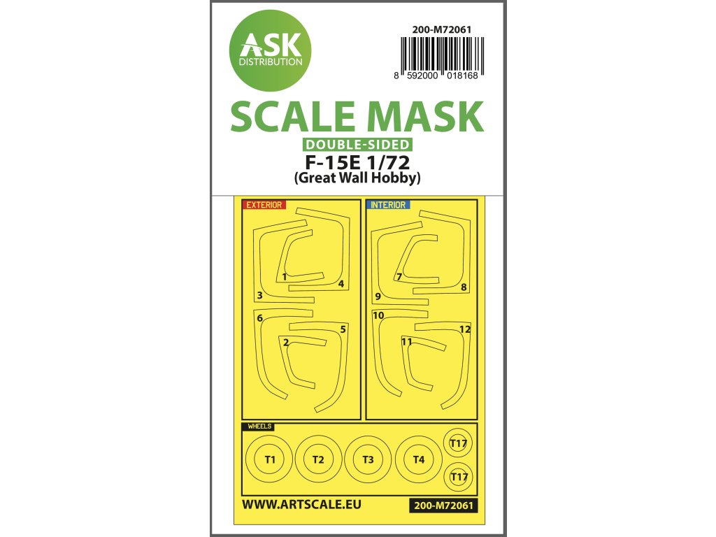 1/72 F-15E samolepící oboustranná maska pro stavebnici Great Wall Hobby. Kabina - vnější a vnitřní strana a masky koleček. Katalogové číslo: 200-M72061 v excelentní kvalitě a nejlepší technologickou výrobou průřezu folie. Číselný potisk společně s návodem jednoznačně definuje části masky a jejich konkrétní umístění a aplikaci.