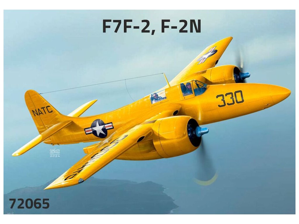 Fly Model 1/72 F7F-2, F-2N Tigercat je plastová stavebnice amerického dvoumotorového stíhacího letounu z konce druhé světové války a poválečného období. Nabízí možnost sestavit jak denní stíhací variantu F7F-2, tak noční verzi F-2N.