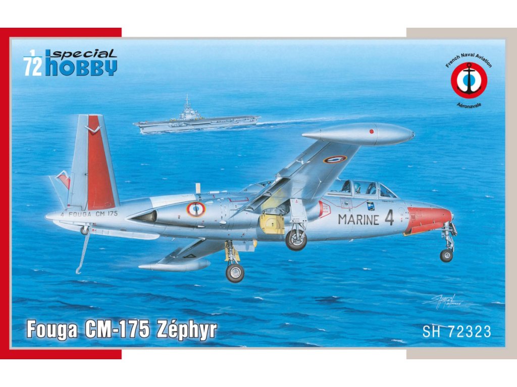 Model Fouga CM-175 Zéphyr v měřítku 1/72 od Special Hobby představuje námořní cvičnou verzi slavného francouzského letounu Fouga Magister, určenou pro výcvik pilotů francouzského námořního letectva. Stavebnice obsahuje detailní plastové díly, kokpit pro dvě osoby a obtisky pro stroje Aéronavale. Balení neobsahuje barvy ani lepidla potřebné k sestavení.