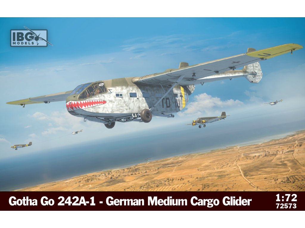 IBG 1/72 Gotha Go-242A-1 představuje plastový model německého transportního kluzáku z druhé světové války v měřítku 1/72. Stavebnice zachycuje ranou verzi A-1, určenou pro přepravu vojáků a materiálu.