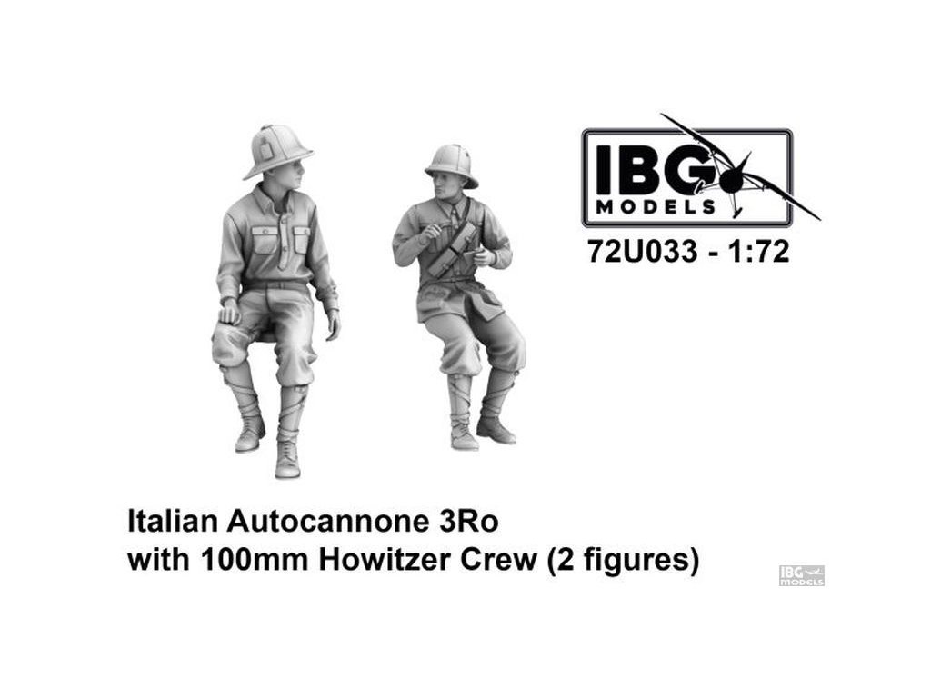 Sada IBG v měřítku 1/72 obsahuje dvě figurky italských dělostřelců vytvořené moderní technologií 3D tisku. Díky vysoké úrovni detailu se výborně hodí k doplnění modelu Autocannone 3Ro s 100mm houfnicí a dokreslí scénu v bojovém i odpočinkovém postavení.