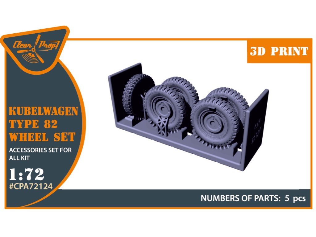 Sada kol v měřítku 1/72 pro německý vůz Kübelwagen Type 82 z období druhé světové války. Nabízí detailní provedení pneumatik i disků, vhodné jako doplněk pro modely.