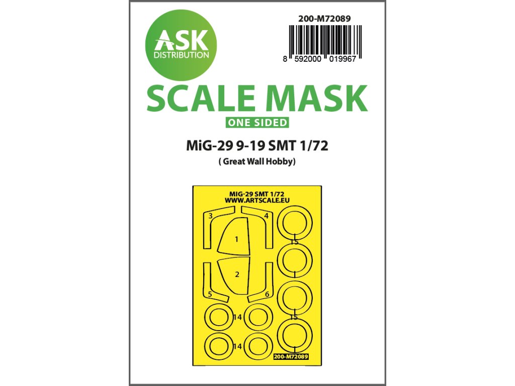 1/72 MiG-29 9-19 SMT samolepící jednostranná fit maska pro stavebnici Great Wall Hobby. Kabina - masky pro vnější stranu čirých dílů, masky kol. Katalogové číslo: 200-M72089