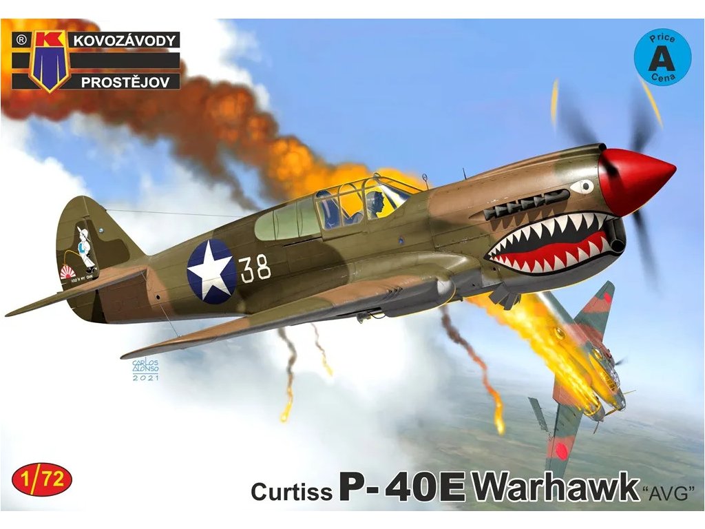 P-40E Warhawk 1/72 od Kovozávodů Prostějov představuje americký jednomotorový stíhací letoun z období druhé světové války, nasazený na mnoha bojištích, především v Pacifiku, severní Africe a Číně. Balení neobsahuje barvy ani lepidla potřebné k sestavení.