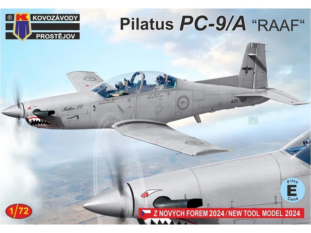 Pilatus PC-9/A 1/72 od Kovozávodů Prostějov je model cvičného turbovrtulového letounu používaného australským letectvem od 90. let pro pokročilý pilotní výcvik. Balení neobsahuje barvy ani lepidla potřebné k sestavení.