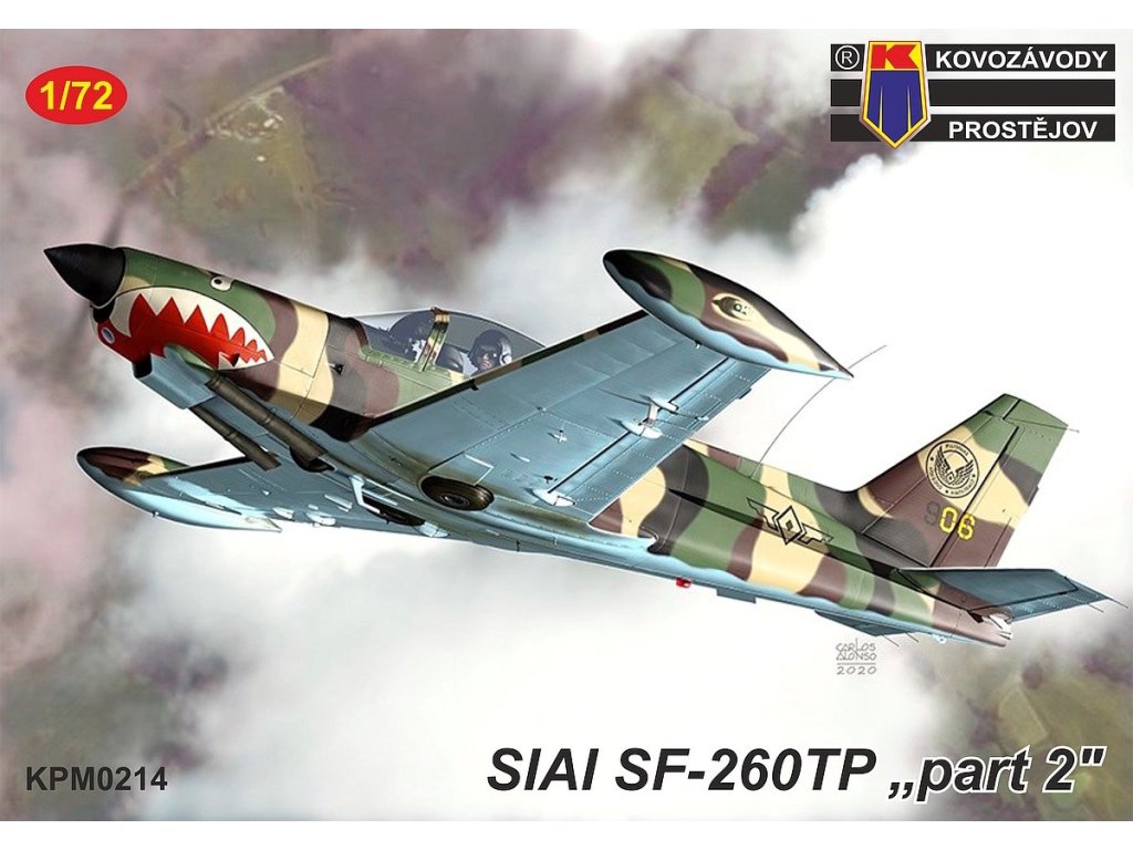 Model SIAI SF-260TP "Light Attacker" v měřítku 1/72 od společnosti Kovozávody Prostějov (KPM) představuje italský lehký cvičný a útočný letoun, který byl využíván v různých letectvech po celém světě. Sada obsahuje detailně zpracované plastové díly, realistický kokpit, jemné povrchové detaily a obtisky pro čtyři různé markingy: