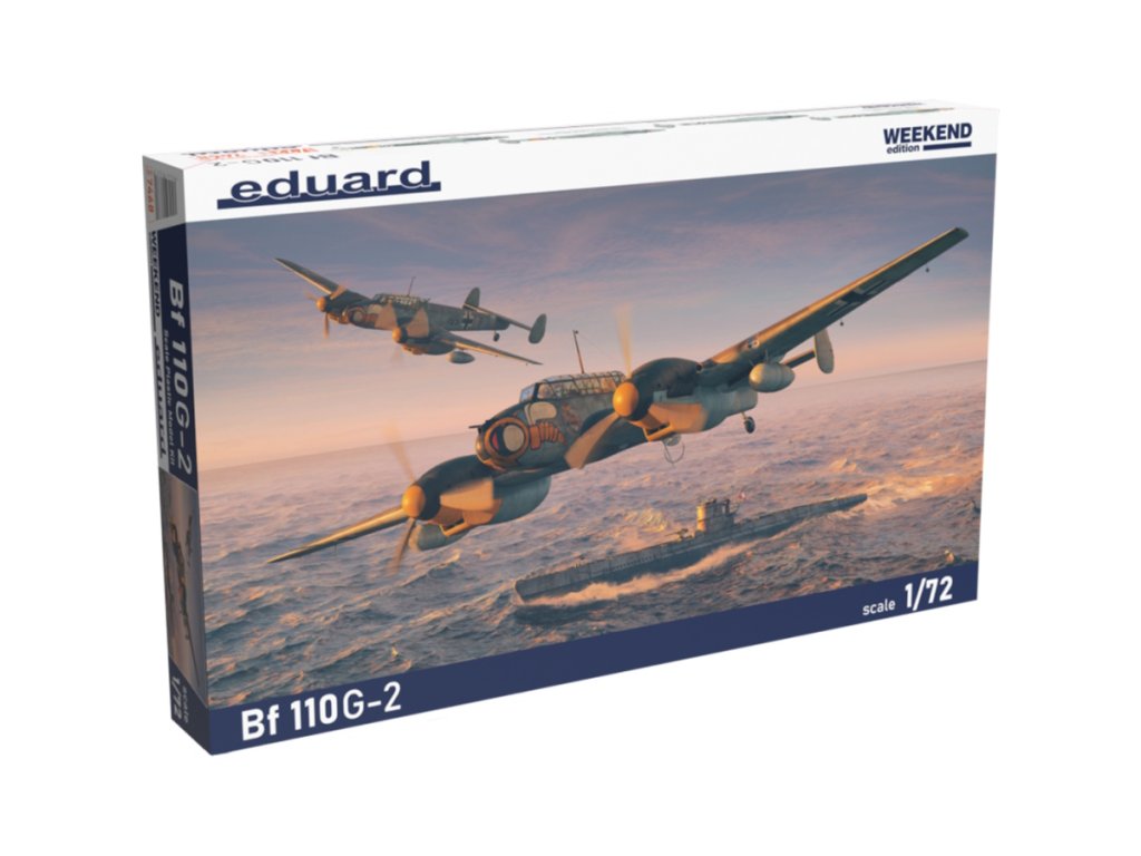 Eduard Bf 110G-2 1/72 je stavebnice německého dvoumotorového víceúčelového letounu z druhé světové války, zpracovaná v edici Weekend s detailními plastovými díly a obtisky pro čtyři kamuflážní schémata. Balení neobsahuje barvy ani lepidla potřebné k sestavení.