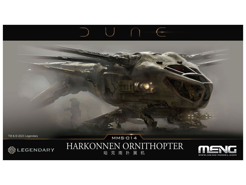 Plastiková stavebnice Harkonnen Ornithopter z filmového zpracování legendárního sci-fi světa DUNE od výrobce MENG. Model zachycuje ikonický létající stroj rodu Harkonnenů, známý z filmového zpracování knihy Franka Herberta.
