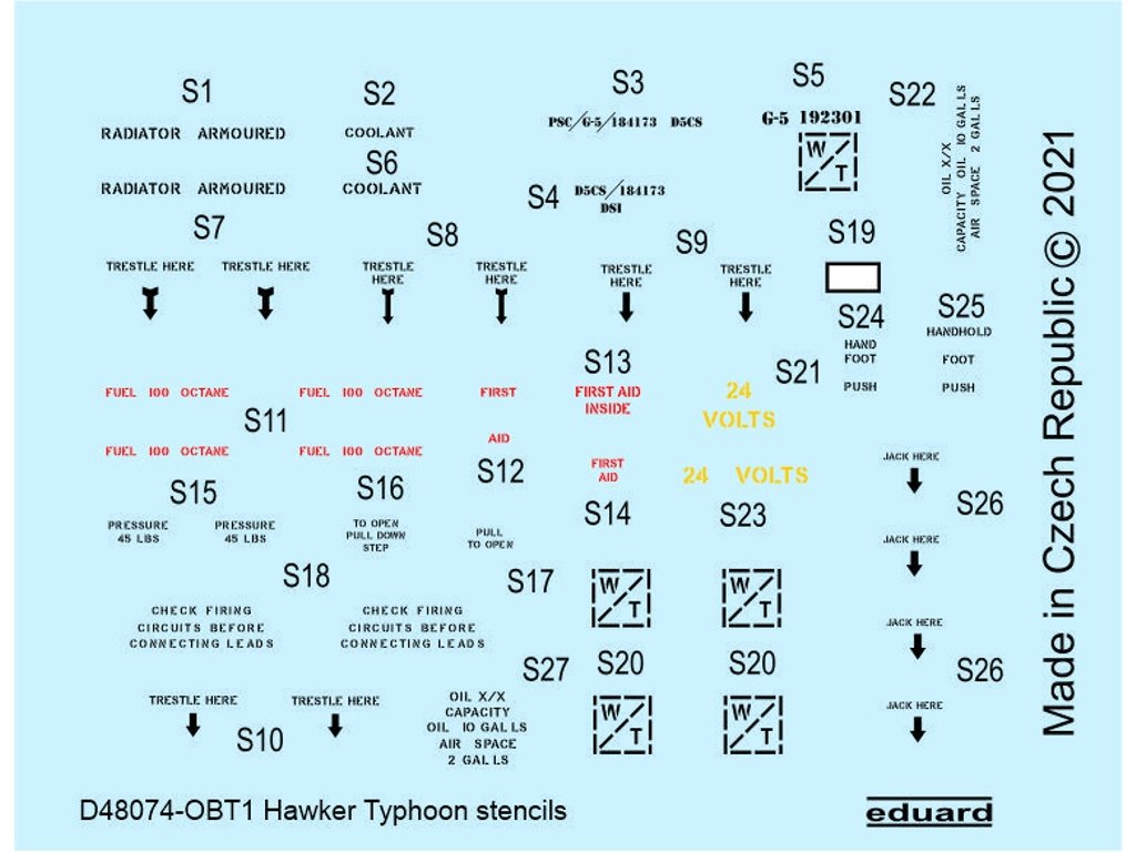 1/32 North American B-25J Mitchell - stencils Decal sheet contain stencils for two plastic kits of B-25J Michtell. Item no. 200-D32026