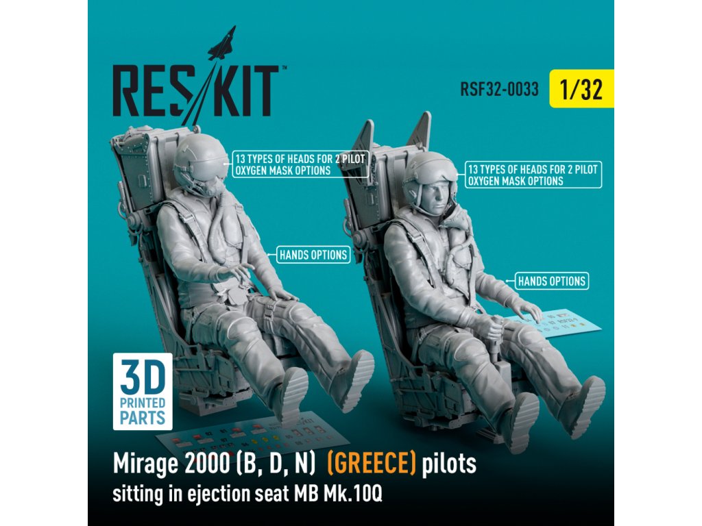 Mirage 2000 (B, D, N) (GREECE) pilots sitting in ejection seat MB Mk.10Q (2 pcs) (3D Printed) (1/32)