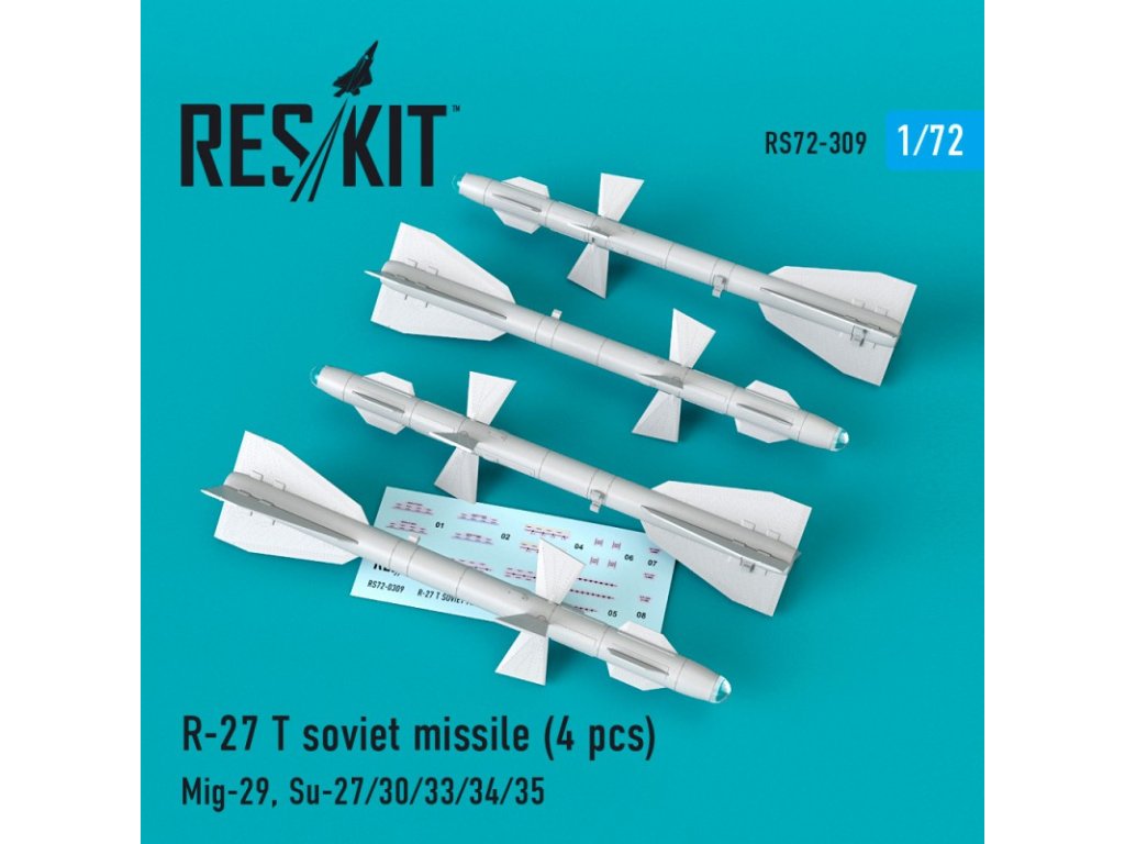 R-27 T soviet missiles (4 pcs) (MiG-29, Su-27/30/33/34/35) (1/72)