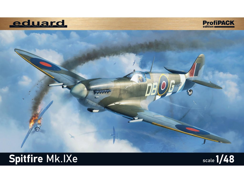 Eduard Spitfire Mk.IXe 1/48 je stavebnice britského stíhacího letounu z konce druhé světové války, zpracovaná v edici ProfiPACK s detailními plastovými díly, barevnými leptanými doplňky, maskami a obtisky pro šest kamuflážních schémat. Balení neobsahuje barvy ani lepidla potřebné k sestavení.