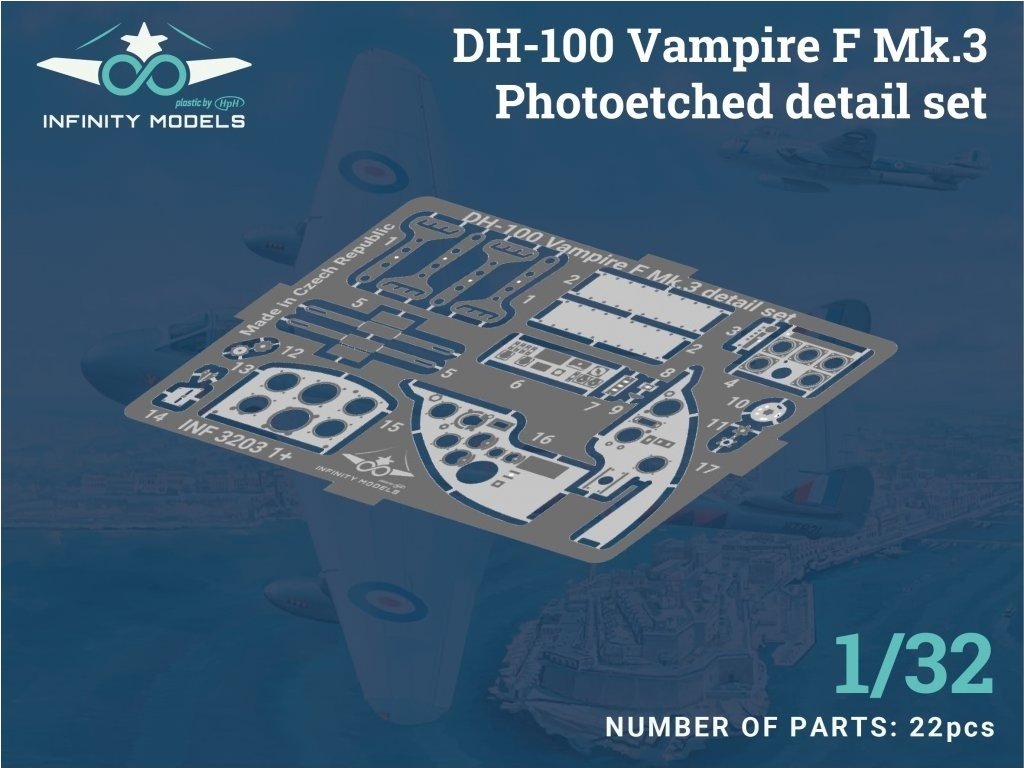 1/32 DH-100 Vampire FB.Mk.3 / FB.Mk.5 Wendemaske für Infinity Bausatz. Katalognummer 200-M32014 Hervorragende Qualität, beste technologische...