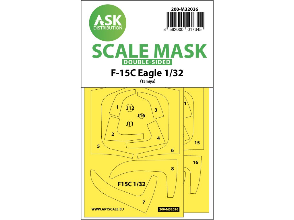 Art Scale Kit Distribution (ASK) stellt vorgestanzte und nummerierte Abdeckbögen für Plastikmodelle her. Die Masken sind in erster Linie für das Abkleben von Kabinen und Rädern gedacht, erleichtern aber auch das Abkleben anderer Teile des Modells. Jedes Kit wird für einen bestimmten Modellbausatz im entsprechenden Maßstab empfohlen, um maximale Genauigkeit und Benutzerfreundlichkeit zu gewährleisten.