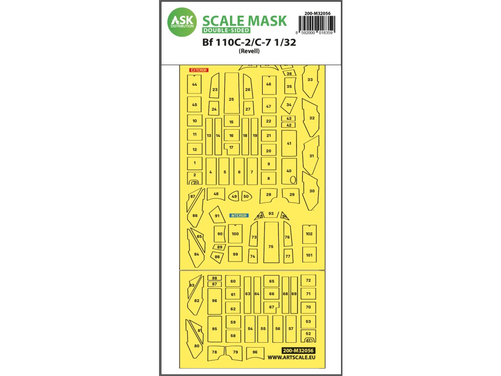 1/32 Messerschmitt Bf 110C-2/C-7 Wendemaske für Revell Bausatz. Katalognummer 200-M32056 Ausgezeichnete Qualität, beste technologische Herstellung des Folienquerschnitts. Geeignet für: Bemalung - Airbrush. Alle Teile der Maske sind mit Nummern bedruckt, die zusammen mit den Anweisungen eindeutig den maskierten Bereich auf klaren und anderen Teilen des Kunststoffmodells identifizieren.