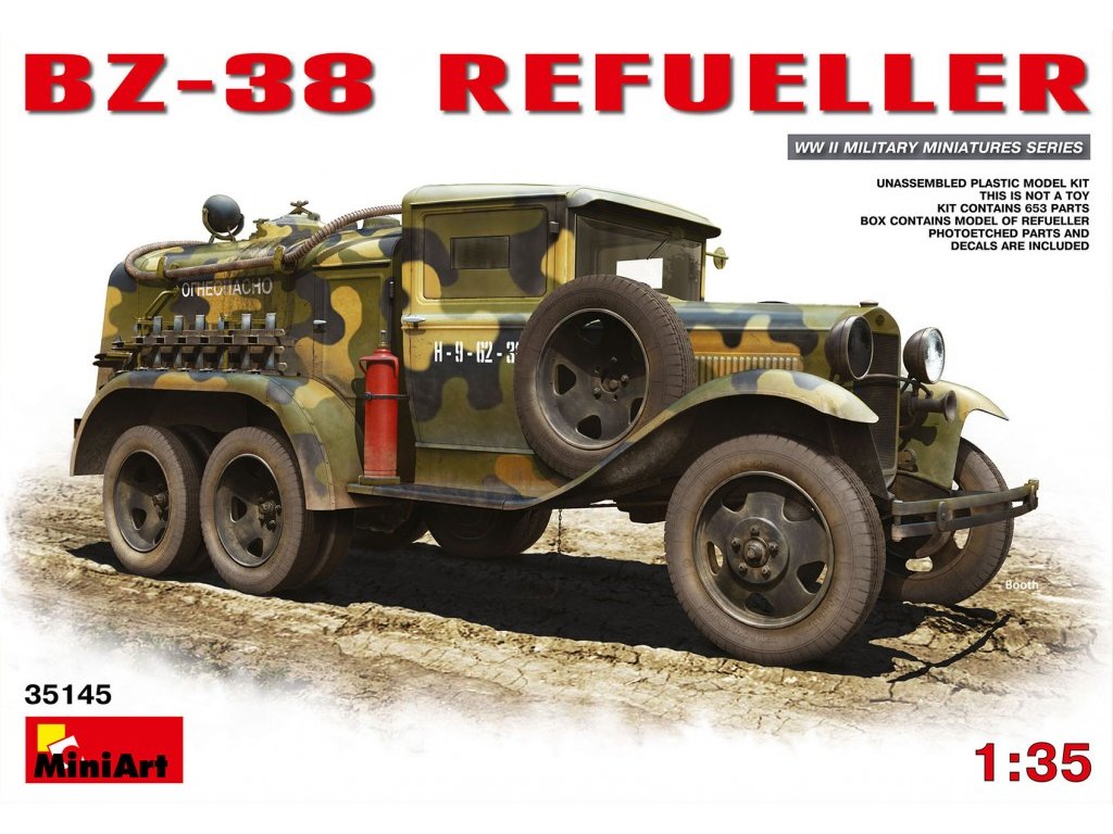 Der MiniArt 1/35 BZ-38 Refueller bietet eine detaillierte Wiedergabe des Fahrzeugs mit einem ausgefeilten Fahrgestell, einer Kabineneinrichtung und einem realistischen Kraftstofftank. Der Bausatz enthält auch kleine Elemente wie Schläuche, Werkzeuge und anderes Zubehör, die die Funktion des Tankers unterstreichen.