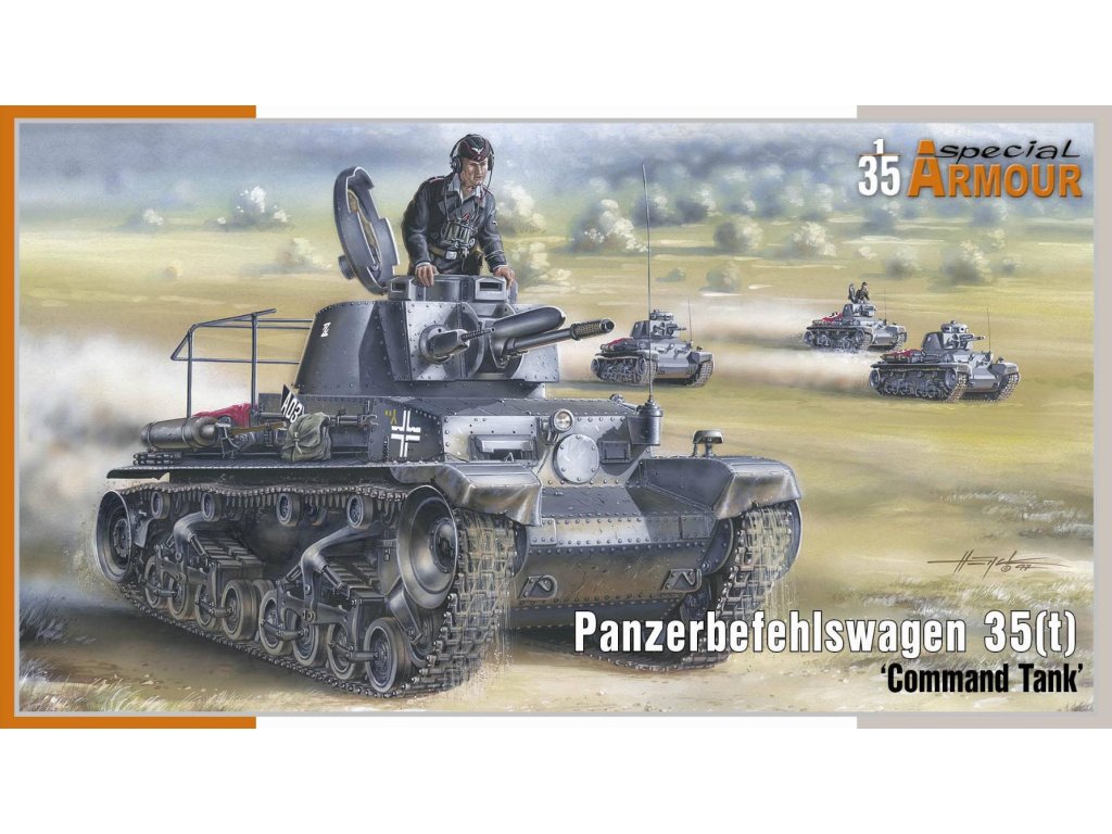 Der Panzerbefehlswagen 35(t) war ein aus dem tschechoslowakischen leichten Panzer LT vz. 35 umgebauter Führungspanzer, der in den Jahren 1939-1940 von der deutschen Wehrmacht eingesetzt wurde. Dieser Panzertyp war mit einer speziellen Funkausrüstung und anderen Modifikationen ausgestattet, um eine effektive Steuerung der Kampfeinheiten zu ermöglichen. Die Panzer des Typs Panzerbefehlswagen 35(t) nahmen an den Invasionen in Polen und Frankreich teil, wo sie sich als wirksam erwiesen, obwohl sie nach und nach durch modernere Typen ersetzt wurden. Dieses Modell im Maßstab 1:35 bietet eine detaillierte Verarbeitung, die nicht nur von Modellbauern, sondern auch von Liebhabern der Militärgeschichte geschätzt werden wird.