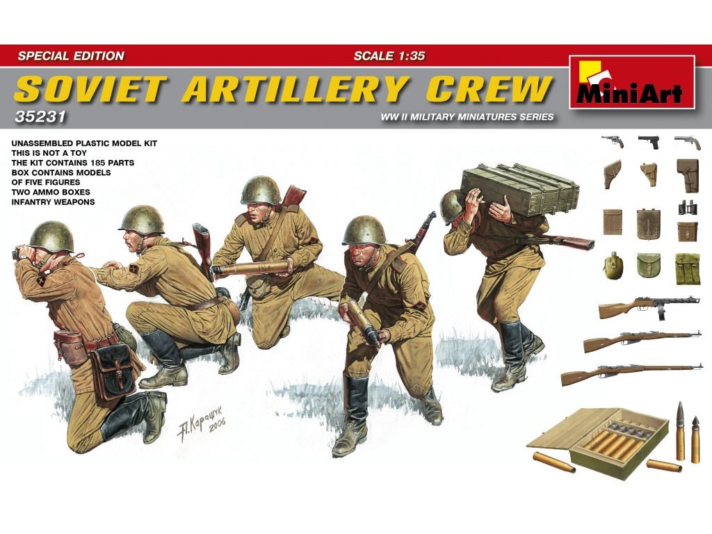 Die MiniArt 1/35 Soviet Artillery Crew Special Edition zeigt sechs sowjetische Soldaten aus dem Weltkriegs, dargestellt in realistischen Aktivitäten, die mit der Bemannung einer Artilleriestellung verbunden sind. Die Figuren stellen eine Vielzahl von Posen dar - Laden, Zielen, Munitionszufuhr Munition oder Kommunikation - und sind die perfekte Ergänzung zu allen sowjetischen Geschützen im Maßstab 1:35.