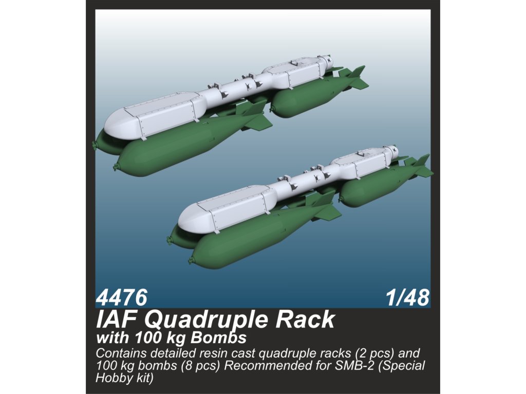 1/48 IAF Quadruple Rack with 100 kg Bombs (2 pcs.) / for SMB-2, Sa´ar and Mirage III kits