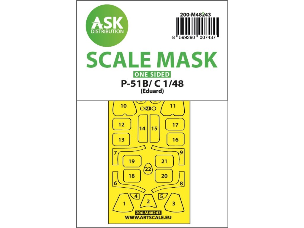 Art Scale Kit Distribution (ASK) stellt vorgestanzte und nummerierte Abdeckbögen für Plastikmodelle her. Die Masken sind in erster Linie für das Abkleben von Kabinen und Rädern gedacht, erleichtern aber auch das Abkleben anderer Teile des Modells. Jedes Kit wird für einen bestimmten Modellbausatz im entsprechenden Maßstab empfohlen, um maximale Genauigkeit und Benutzerfreundlichkeit zu gewährleisten.